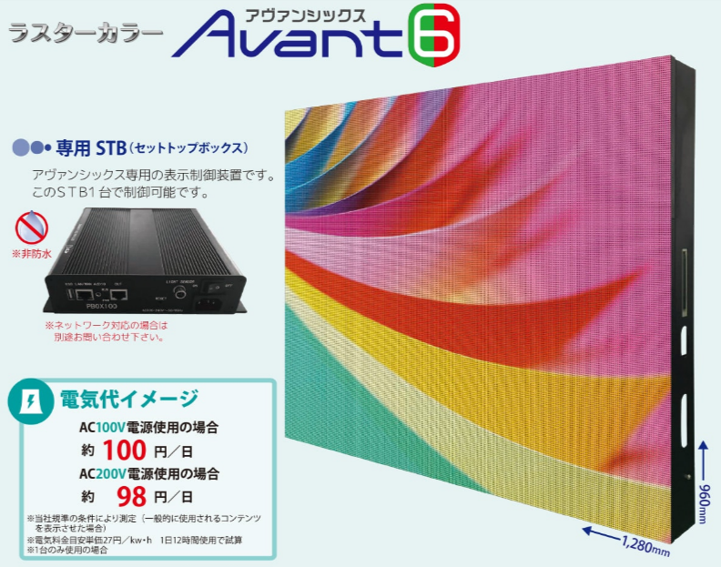 「Avant6(以下アヴァンシックス)」はRGB3in1のチップ型LEDを約6.67mmピッチ(間隔)で配したフルカラーディスプレイで、27,648個ものRGB3in1チップ型LEDの数を使用しています。これは外形サイズ(縦横)が同じ従来のRECOMO(10mmピッチ、チップ型LED12,288個使用)と比較した場合、2.25倍と圧倒的な超高精細化を実現※しました。